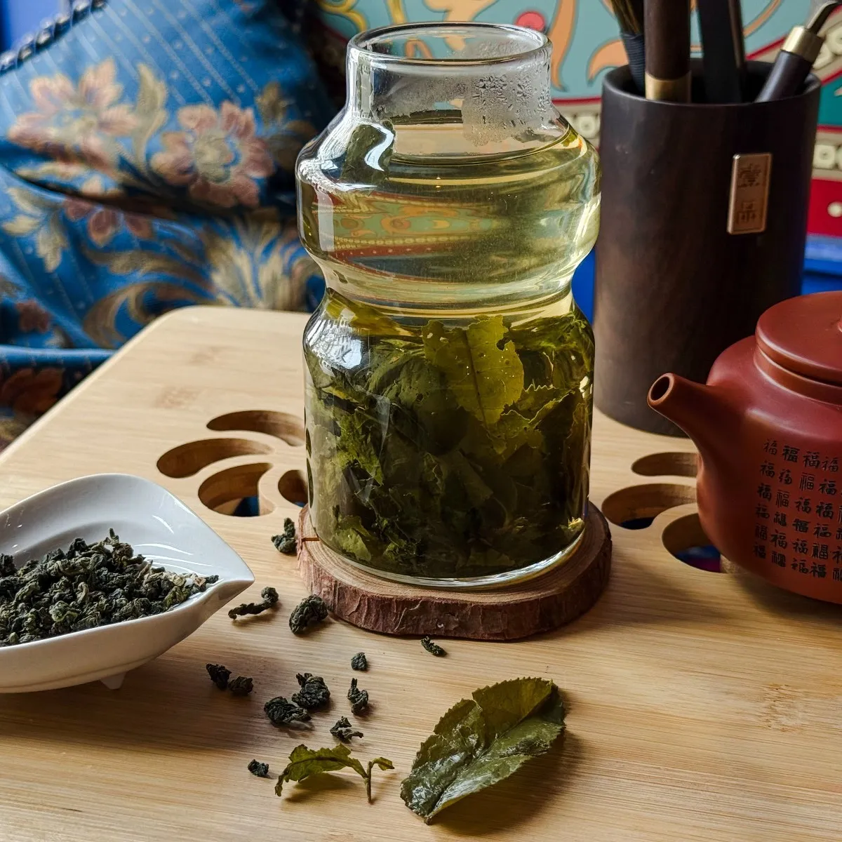 Смарагдове, красиво скручене листя вражає дуже яскравим, класичним для цього сорту ароматом бузку навіть в сухому вигляді. Одного разу відчувши, не сплутаєш його ні з чим! При заварюванні аромат розкриває нові відтінки: з’являється більше квітів, трохи фруктів і мед. Настій жовто-зелений, прозорий, з дуже легким, м’яким смаком і довгим солодким післясмаком. Щоб відчути всю палітру смаків і ароматів, цей чай потрібно пити протоками.
