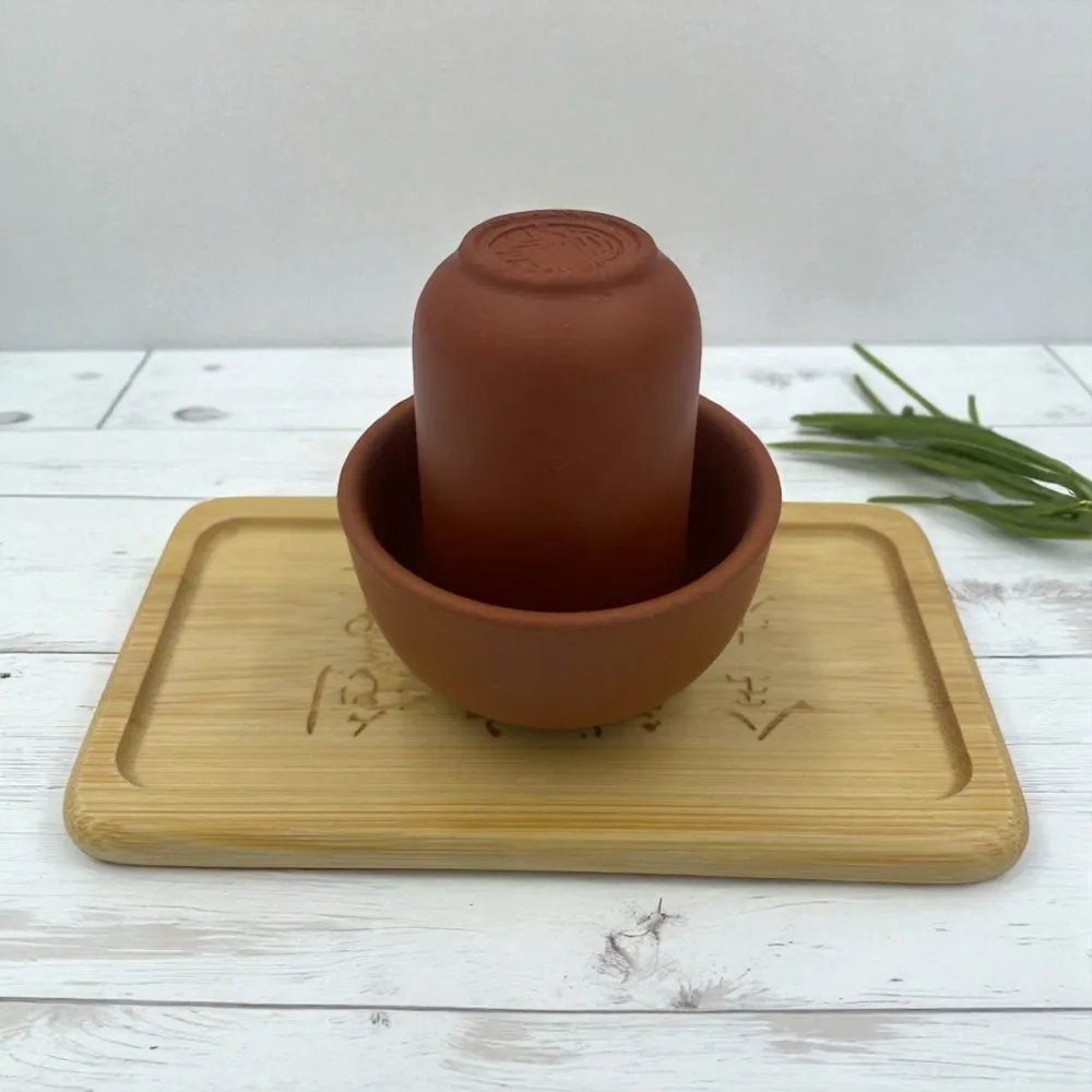 Чайна пара виготовлена з червоної глини високої якості — природного матеріалу, який має унікальні терморегулюючі властивості. Глина чудово зберігає тепло, поступово передаючи його напою, завдяки чому чай довше залишається ароматним і насиченим. Вона не покрита глазур’ю всередині, що дозволяє напою «дихати», а отже, краще розкривати свій характер.