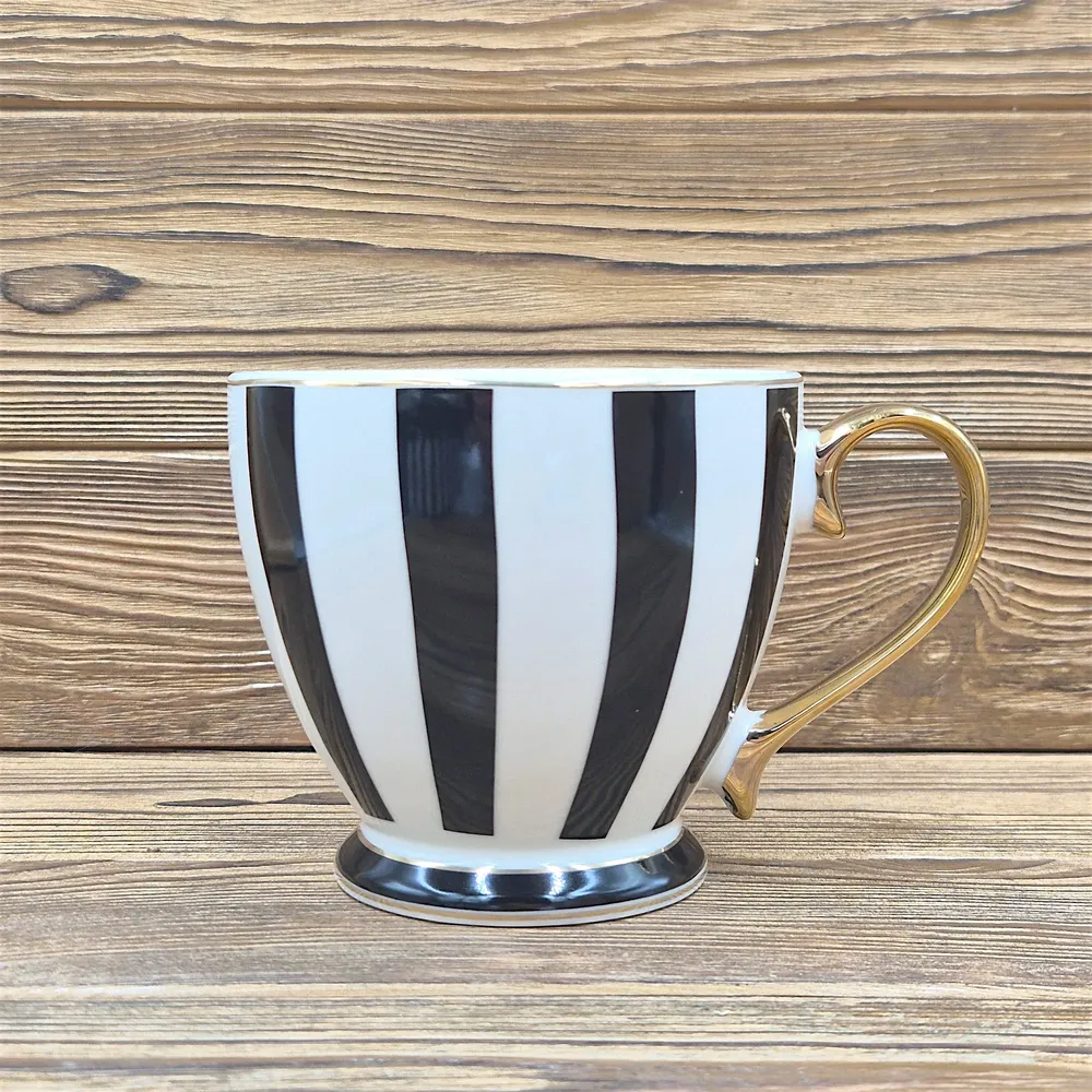 Елегантна керамічна чашка від TEAHOUSE — поєднання класичного дизайну та вишуканості. Контрастний принт у чорно-білу вертикальну смужку доповнений розкішною золотистою ручкою, що надає виробу особливого шарму. Завдяки об’єму 450 мл, вона ідеально підходить для великої порції улюбленого чаю, кави чи какао. Чашка постачається у стильній подарунковій коробці, що повторює дизайн виробу. Це готове рішення для подарунка близьким або колегам. Додайте естетики вашому щоденному чаюванню разом із TEAHOUSE!
