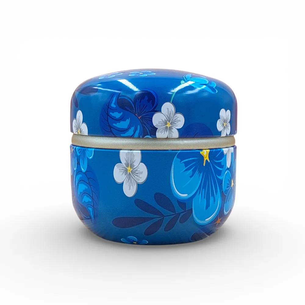 Жерстяна банка для чаю “Синя квітка” 85×85